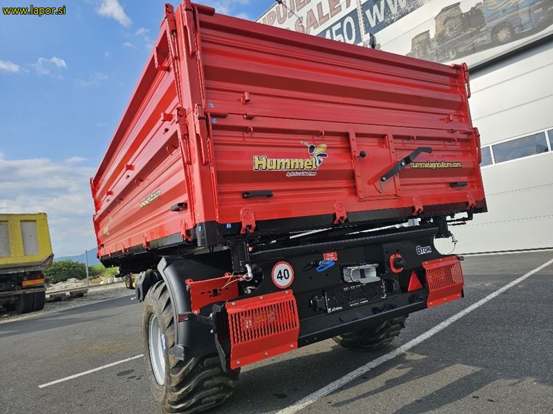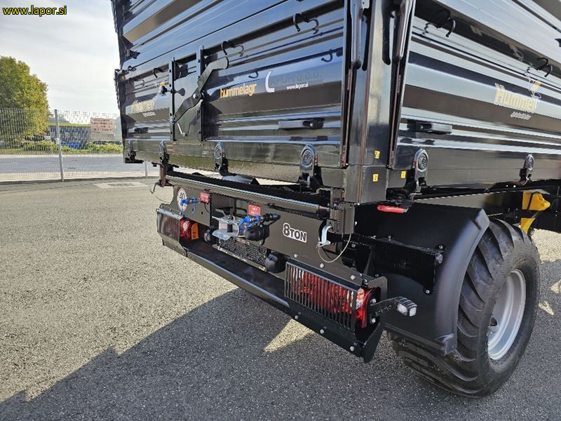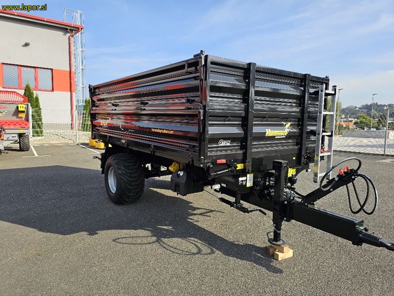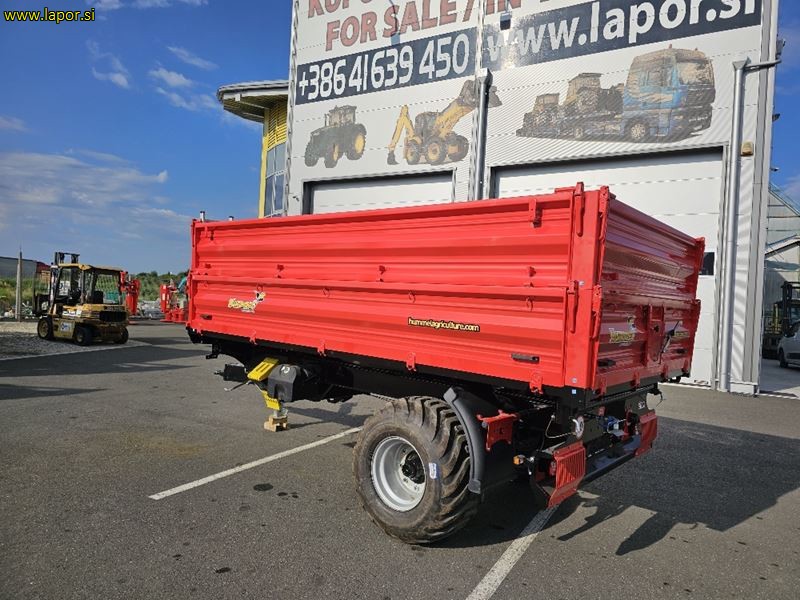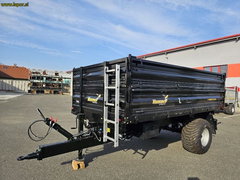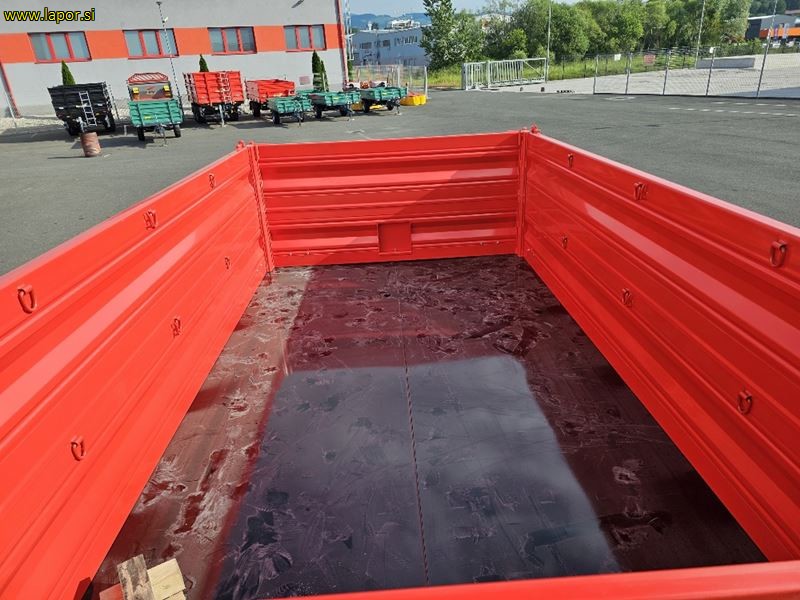 skupna nosilnost 10.500 kg, nosilnost 8.000 kg, dimenzije zaboja 400 cm, x 220 cm, tri strani kiper, stranice 500 mm + 500 mm ( možnost dobave stranic 500 mm+500mm+500 mm ), gume: 500/50-17, nastavki za pritrditev cerade, izpust za žito, okrogel rob dna, hidravlične zavore ali zračne zavore (zračne zavore doplačilo), ročna zavora, zagozde za kolesa, vrtljiv priklop, kot kipanja 45°c, posoda za vodo, zaboj za orodje, lestev, priklop + inst . + elektrika za dodatno prikolico